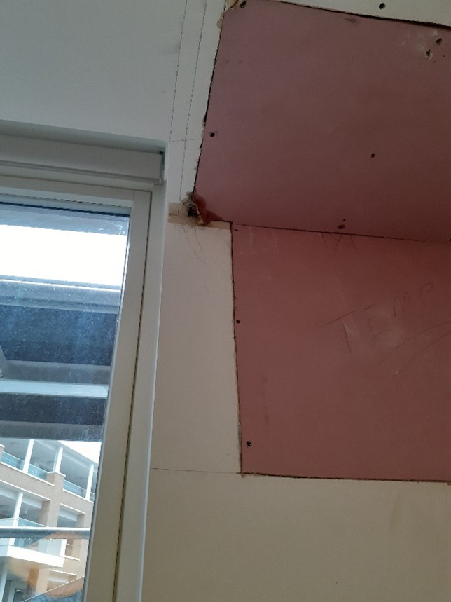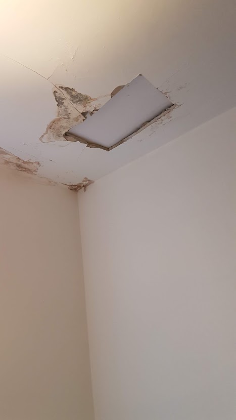 - Ceiling showing water ingress